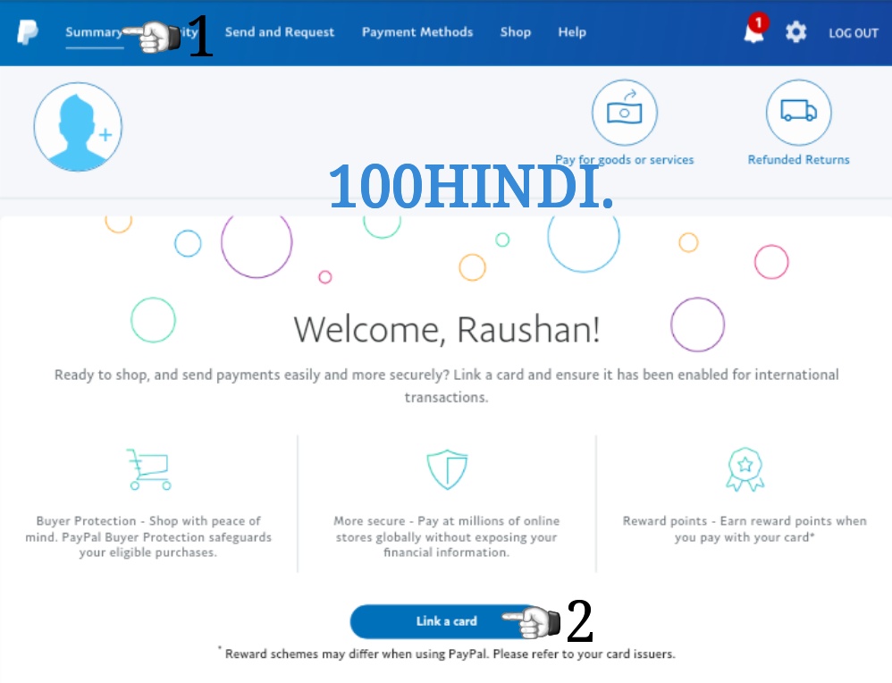 isme aapko "(1) summary" per click karna hai aur uske baad, (2) link a card } par click karna hai ! Ab Aap Ke Samne Kuch Is Tarah ka page khulega !⤵